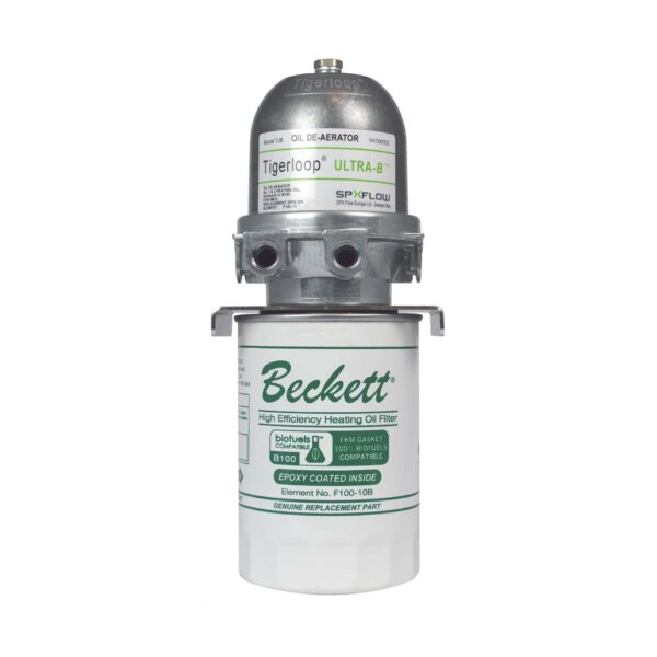 Fuel Filters: Installation B100 upgrade requires two (2) B100 filters — one at the outlet of the fuel tank and one at the burner. If Tigerloop Ultra-B Combination Deaerator / Filter has been installed, the filter at the burner has been accounted for and only the filter upgrade at the tank would be necessary. If the existing system has a B100 deaerator but does NOT have B100 filters, BOTH the tank and burner filters would need to be upgraded. Upgrade cost includes either 1 or 2 of the Complete Standard Spin-On Filter with the Filter Element ($45) or the Complete Low-Profile Spin-On Filter with the Filter Element ($45) and the associated Replacement Spin-On Filter Element ($10-$15). |