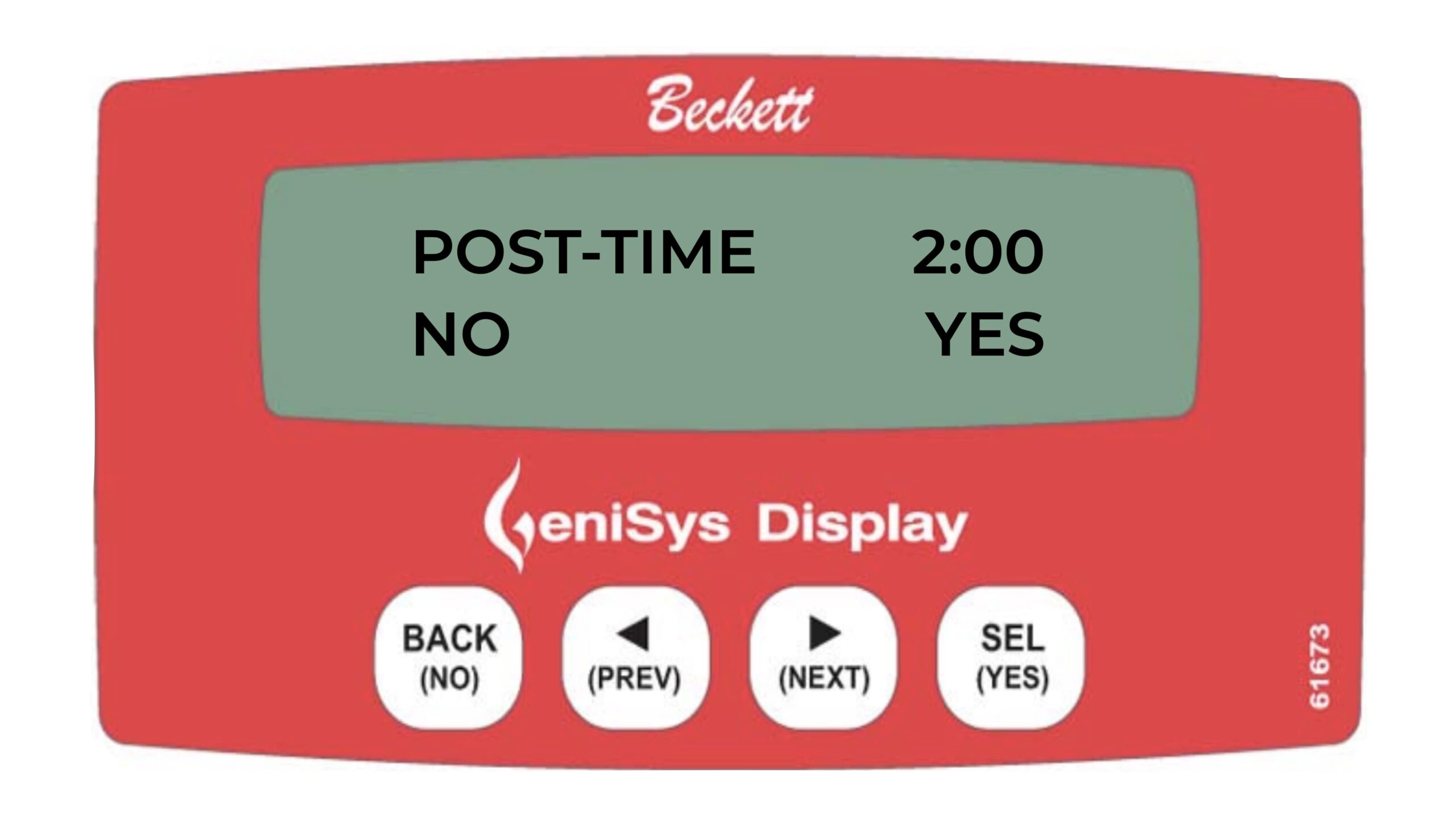 Pre-Time is now set… press NEXT to set the Post-Purge